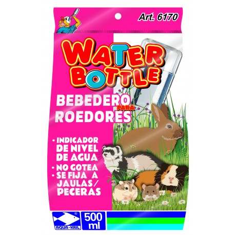 Bebedero con envase de plástico, tapa con despachador de acero inoxidable con doble balin, indicador de nivel alambre sujetador con base de plástico , con capacidad de 500 ml , ideal para roedores como (HAMSTER, CHINCHILLAS HURONES JERBOS CONEJOS ERIZOS Y RATONES)