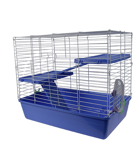 Incluye comedero, bebedero y dos niveles con rampa.